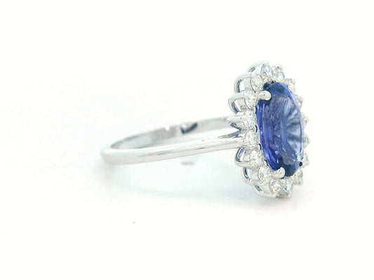 18K White Gold Oval Tanzanite Ring with Diamond Halo – 1.99 Ct