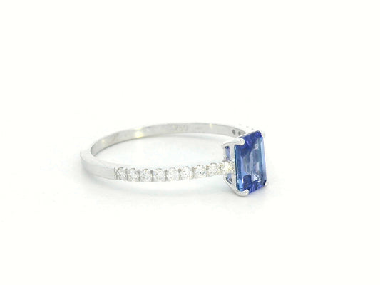 18K White Gold Ring with 0.56ct Emerald-Cut Tanzanite with Diamond Accented Band