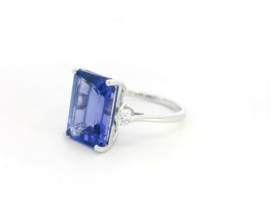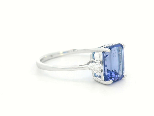 18K White Gold Tanzanite & Diamond Ring – 3.08ct Emerald-Cut Tanzanite with 0.13ct Diamond Accents