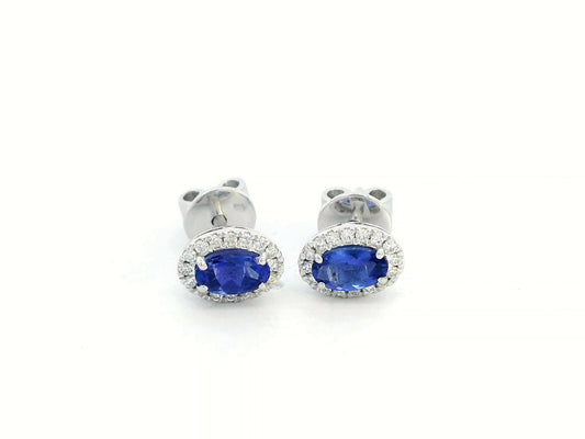 18K White Gold Oval Tanzanite & Diamond Halo Earrings – 1.84ct Tanzanite, 0.19ct Diamond