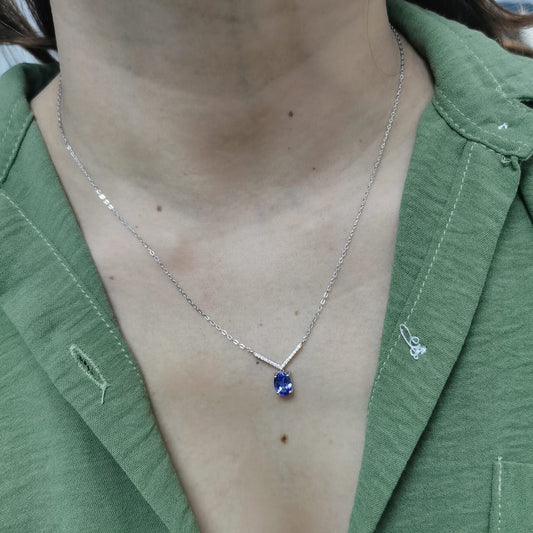 Elegant 18K Gold Tanzanite Necklace – 1.06 Ct Oval Tanzanite & 0.08 Ct Diamonds