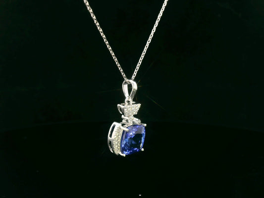 18k White Gold Cushion-Cut Tanzanite & Diamond Halo Pendant
