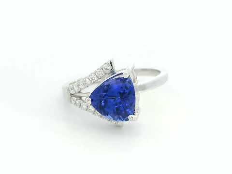Trillion-Cut Tanzanite & Diamond Ring in 18k White Gold