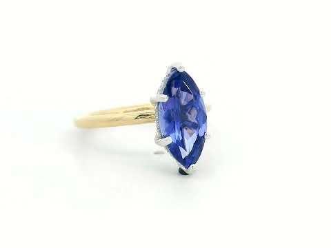 3.56 Carat Marquise Tanzanite Ring in 18K Yellow Gold with Hidden Diamond Halo