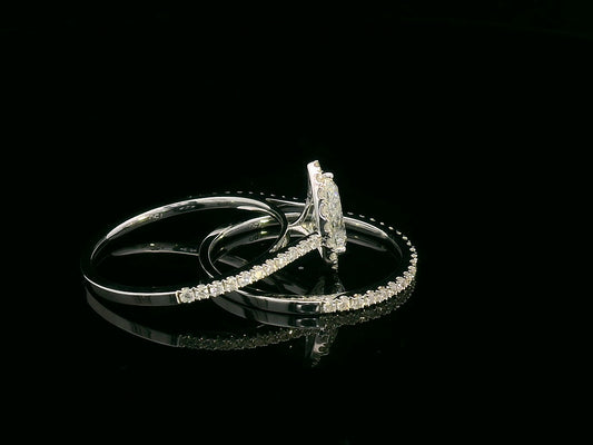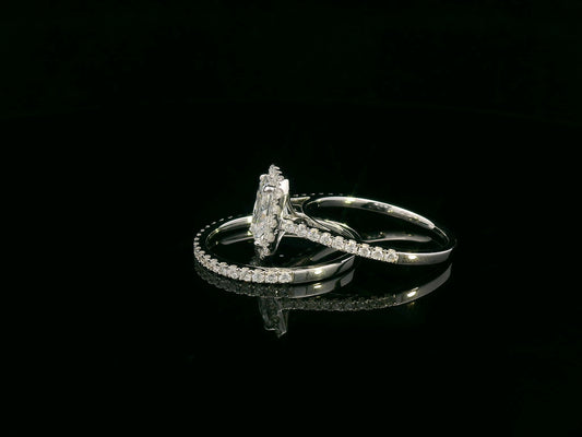 18K White Gold Radiant-Cut Diamond Halo Bridal Set | Engagement Ring + Matching Wedding Band