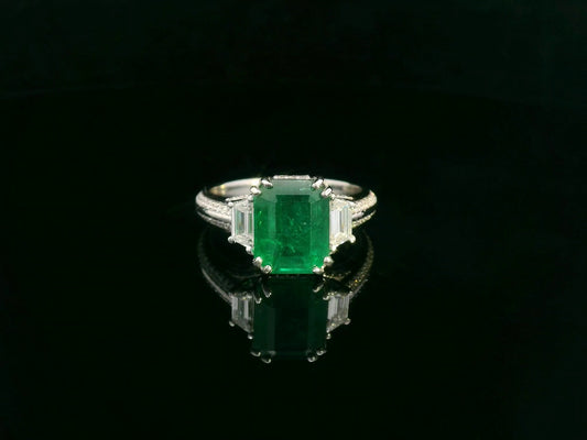 18K White Gold Square-Cut Emerald Ring with Tapered Baguette Diamonds