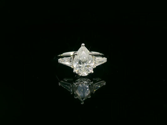 18K White Gold Pear-Cut Diamond Ring – 2.01ct GIA-Certified Center with 0.61ct Tapered Baguette Side Diamonds