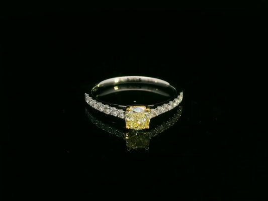 18K White Gold Cushion-Cut Fancy Yellow Diamond Ring with Pave Band