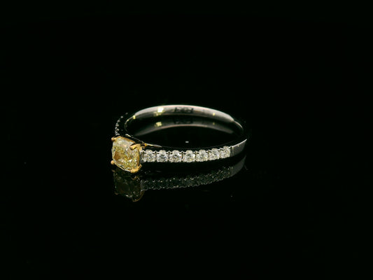 Cushion-Cut Yellow Diamond Engagement Ring in 18K White Gold
