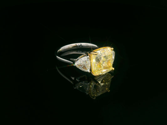 18k White Gold Cushion-Cut Fancy Yellow Diamond Ring with Pear Diamonds | IGI Certified