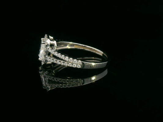 18K Gold Diamond Halo Engagement Ring – 0.53ct VVS1 G Center Diamond
