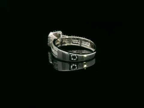 18K White Gold Diamond Cluster Engagement Ring – 0.58 CTW, Triple-Row Band, Princess Cut Illusion
