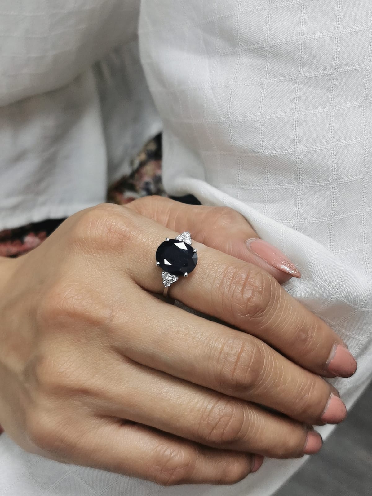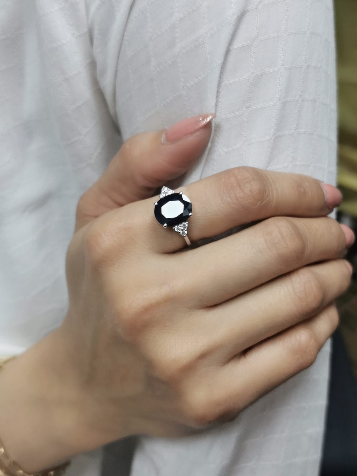 Discover timeless elegance with this exquisite 18K gold sapphire ring. Featuring a 4.16-carat oval-shaped deep blue sapphire, the birthstone for September, this ring exudes sophistication and charm. The center gemstone is beautifully flanked by three sparkling diamonds on each side, with a total diamond weight of 0.20 carats. The smooth polished gold band ensures comfort fitting, making it a perfect choice for engagements, anniversaries, or as a luxurious statement piece.