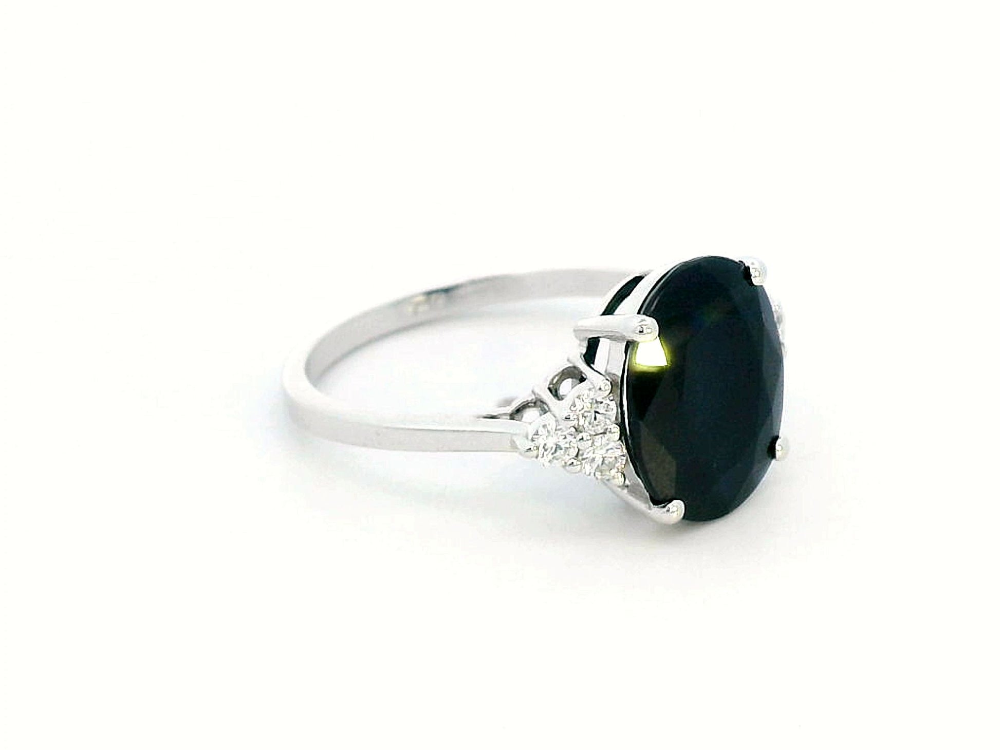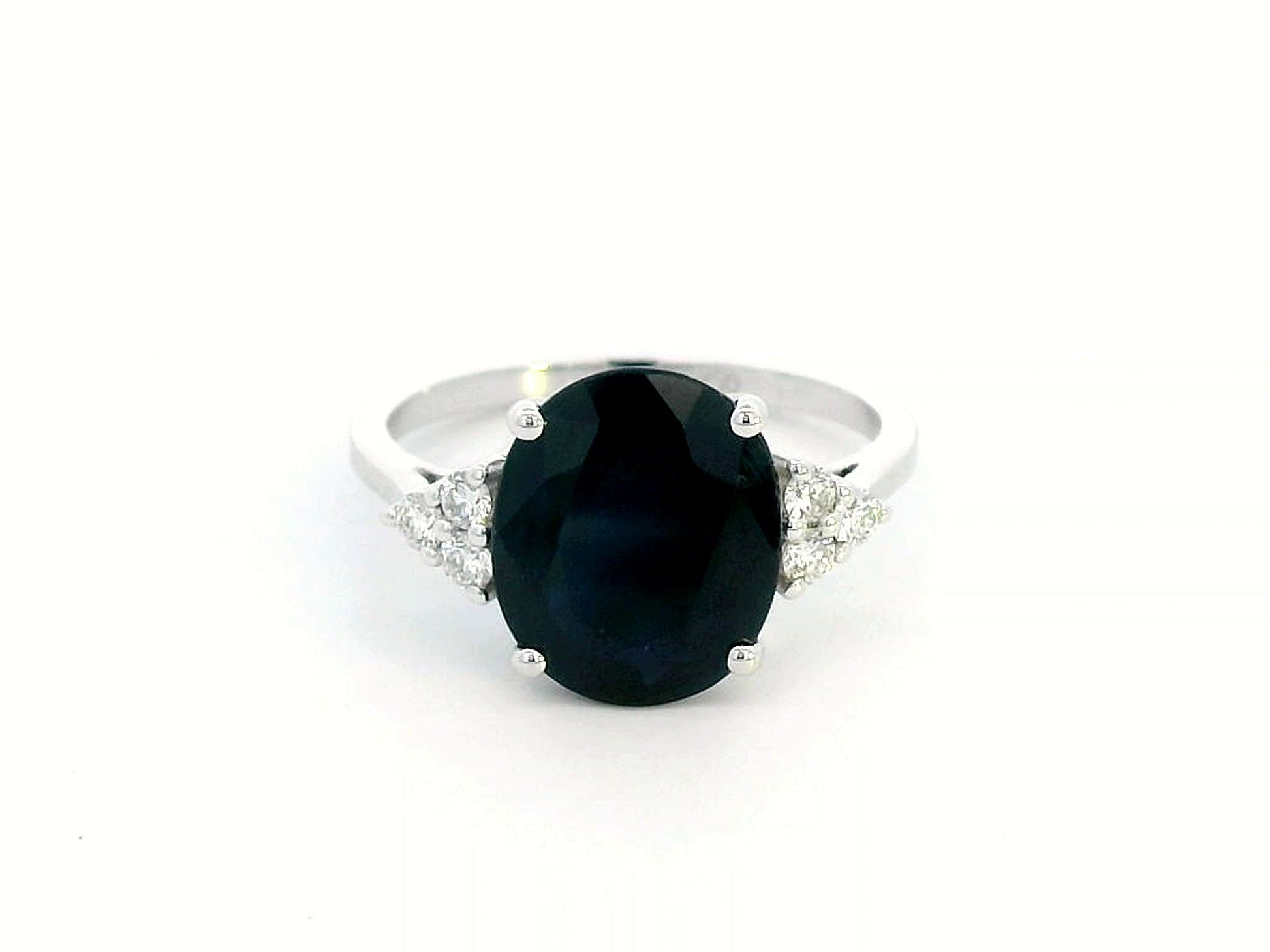 18K Gold Blue Sapphire Ring – 4.16 Carat Oval Sapphire with Diamond Accents