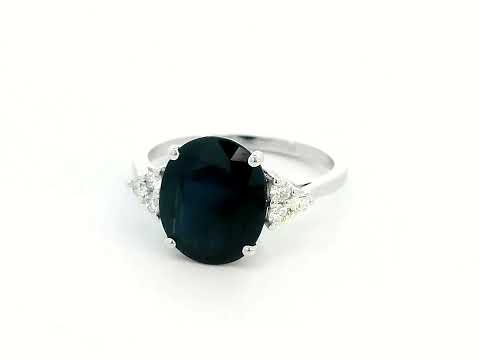 Center Stone: 4.16-carat oval-shaped natural blue sapphire, September's birthstone.