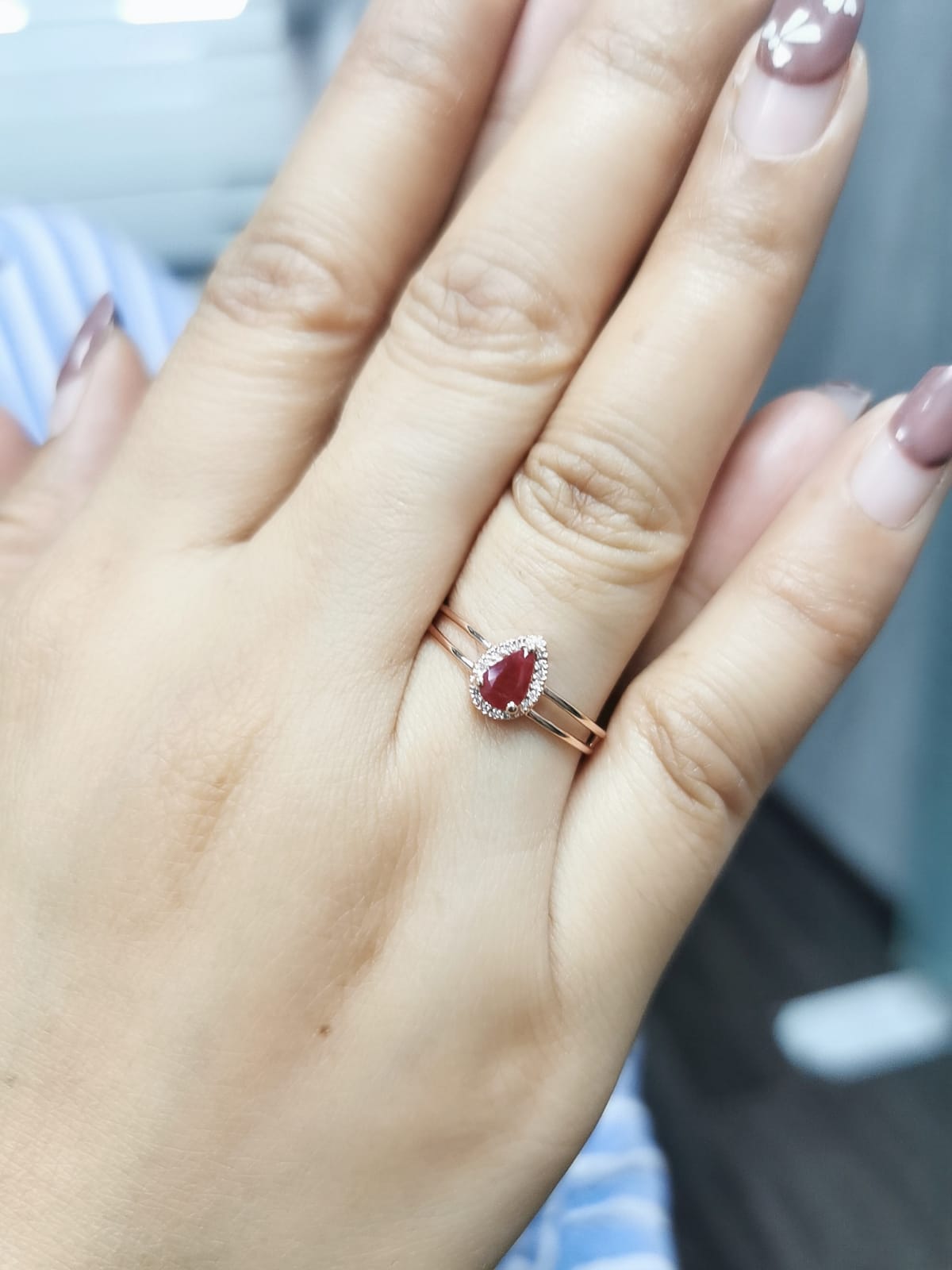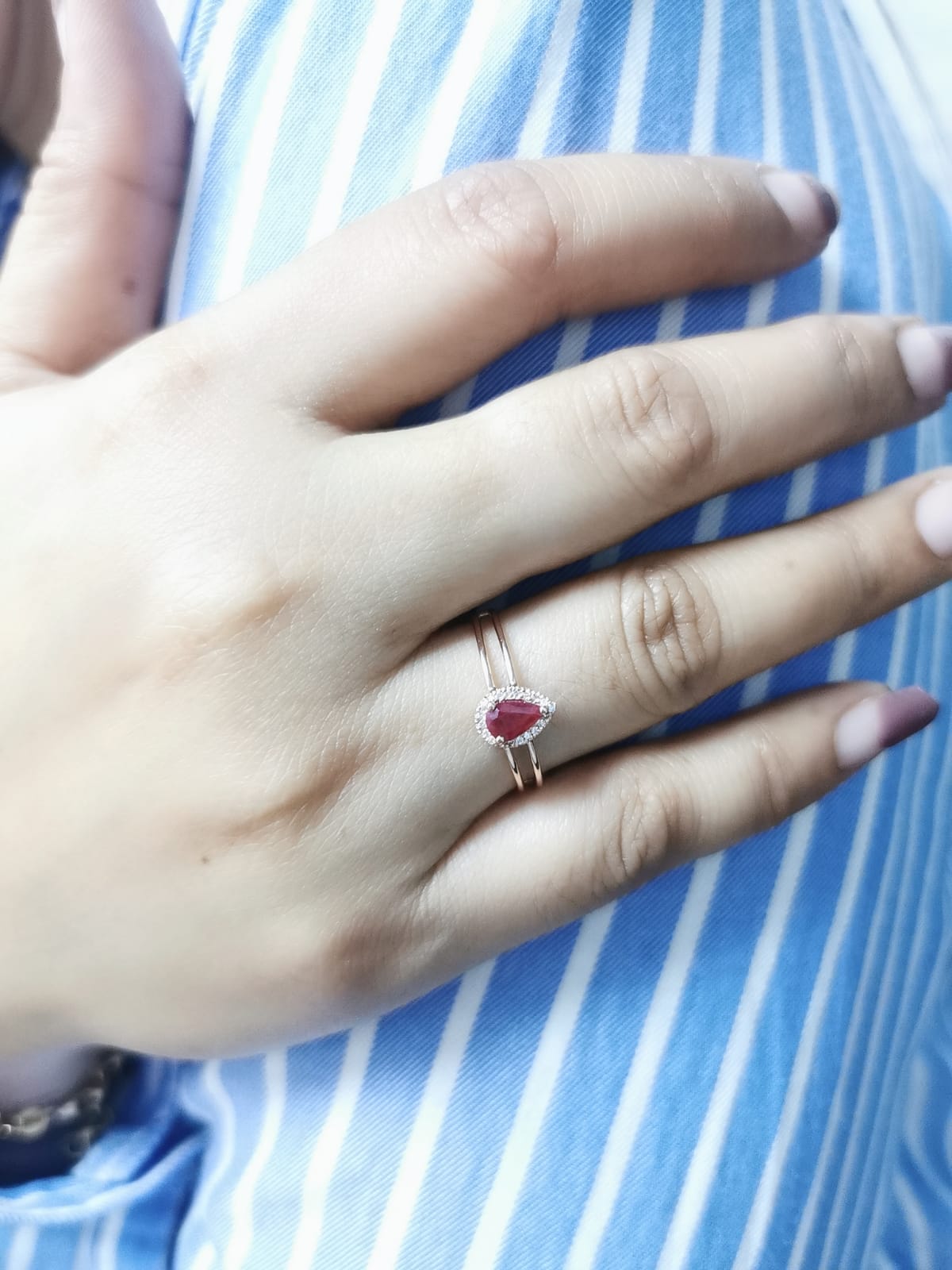 - Gemstone: Natural pear-shaped ruby (0.53 carats)