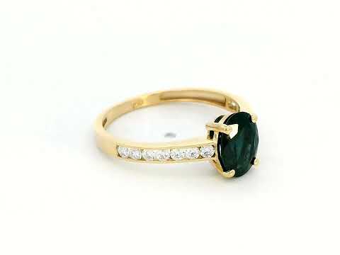 18K Yellow Gold Oval Sapphire Ring with Channel-Set Diamonds –