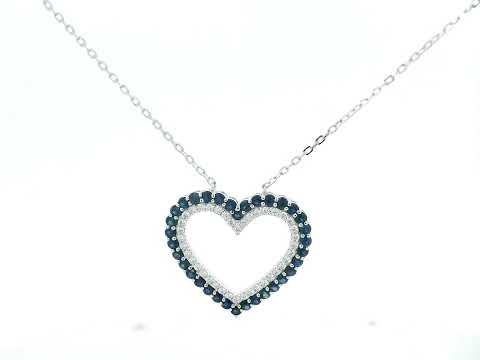 • Design: Heart motif with rich blue sapphire and diamond accents