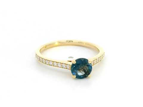 The vivid blue of the topaz paired with delicate diamond accents creates a vibrant, elegant ring that feels both classic and refreshing. A graceful piece with a modern edge—ideal for stacking or wearing solo.