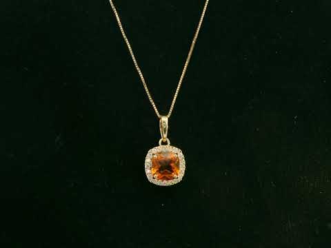Radiant and refined, this Pendant features a 0.90 carat cushion-cut citrine set in a classic four-prong design. A delicate halo of round brilliant diamonds (0.11 carat total) surrounds the vibrant golden gemstone, enhancing its warmth and brilliance. Crafted in 18K yellow gold, the pendant captures a perfect balance of color, sparkle, and timeless elegance — a piece that transitions beautifully from day to evening wear.