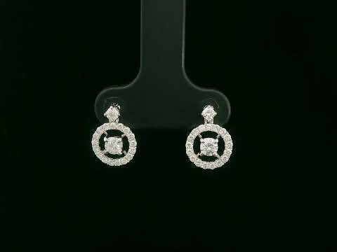 Designed with a floating center diamond framed by a delicate open circle, they offer the look of a drop earring while maintaining the comfort and security of classic push-back studs.