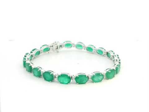 Emerald & Diamond Tennis Bracelet in 18K White Gold