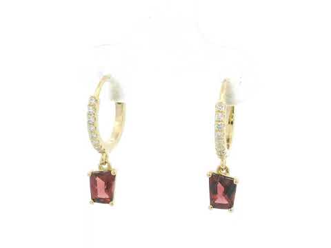 Garnet & Diamond Drop Hoop Earrings in 18K Yellow Gold
