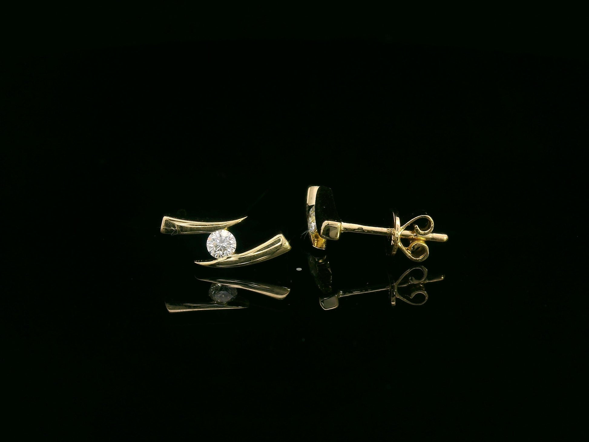 Modern Solitaire Diamond Earrings in 18K Yellow Gold