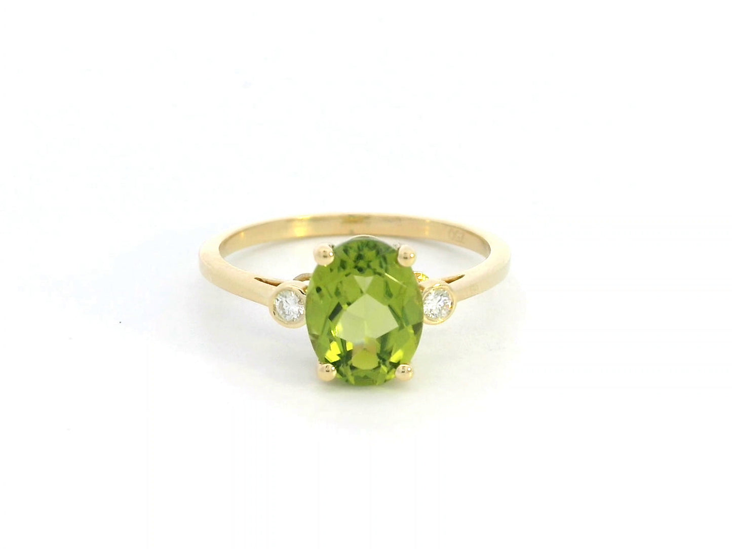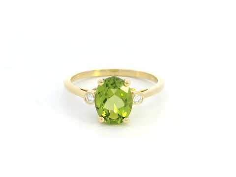 Oval Peridot and Diamond Ring in 18K Yellow Gold