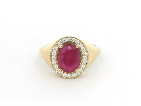 Oval Ruby & Diamond Halo Men’s Ring in 18K Yellow Gold