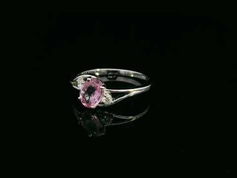 Refined, feminine, and full of soft radiance — this 18K white gold ring highlights an elegant 0.81 carat oval pink sapphire, glowing with a romantic pastel hue. The gemstone is embraced by a graceful split-style band, accented with delicate round brilliant diamonds totalling 0.09 carat.