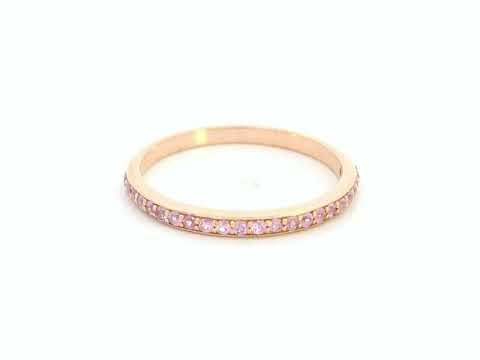Delicate, modern, and effortlessly elegant — this eternity-style band is crafted in solid 18K rose gold and set with a continuous row of soft blush-pink sapphires totaling 0.27 carat. Each sapphire is meticulously pavé-set to create a smooth, refined line of colour that catches the light with subtle shimmer.