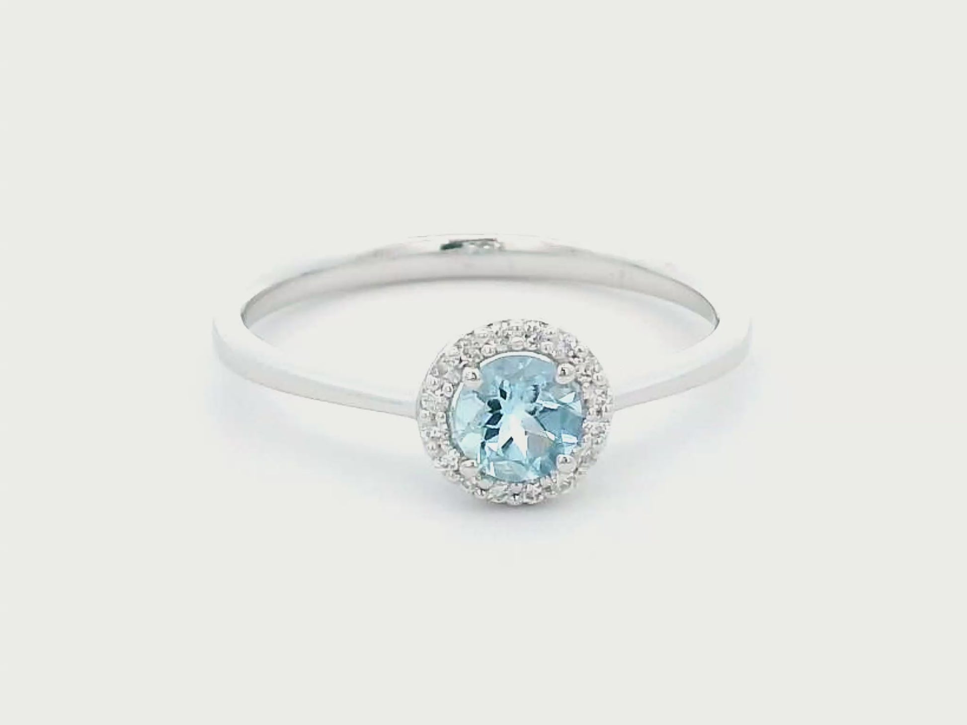 18K Gold Round-cut Aquamarine Ring with Diamond Halo